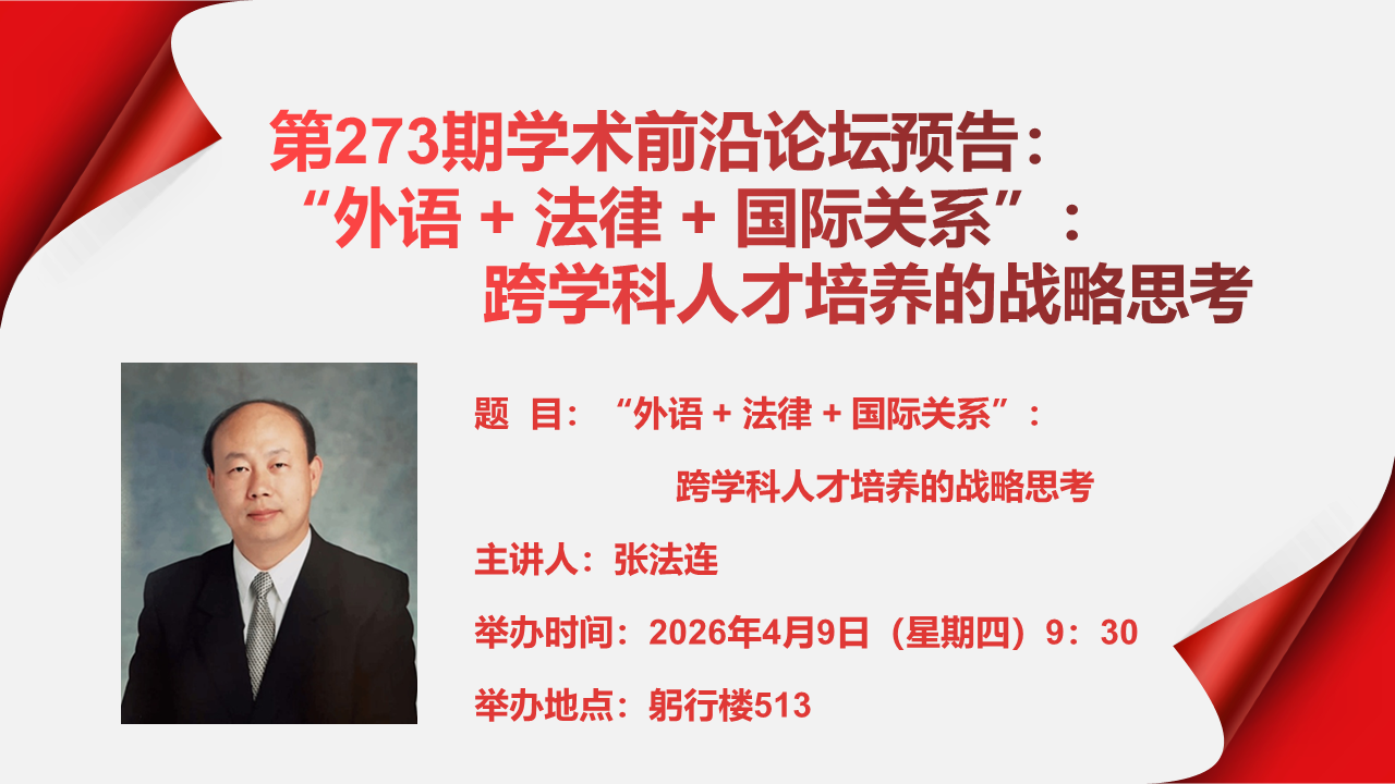 【学术预告】第273期学术前沿论坛预告:“外语 + 法律 + 国际关系”:跨学科人才培养的战略思考