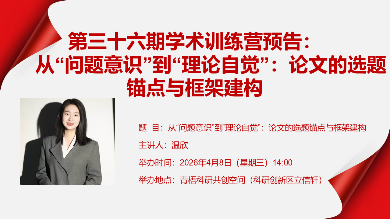 第三十六期学术训练营预告:从“问题意识”到“理论自觉”:论文的选题锚点与框架建构