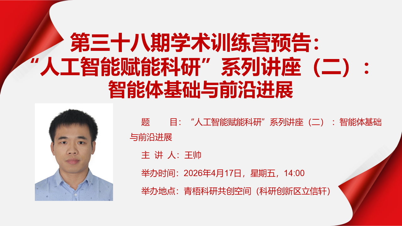 第三十八期学术训练营预告:“人工智能赋能科研”系列讲座(二) :智能体基础与前沿进展