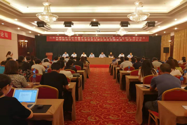 为庆祝中华人民共和国成立70周年,深入贯彻习近平总书记在学校思想政治理论课教师座谈会上的重要讲话精神,全面回顾与总结70年来思想政治教育理论与实践的成就和经验,推动新时代思想政治教育工作的创新发展,由我校和山东省高校思想教育教学研究会、山东大学马克思主义学院联合举办的“新中国成立七十年与思想政治教育创新发展”高端论坛于7月27—28日在山东龙口举行。《红旗文稿》杂志社社长顾保国教授、中国人民大学马克思主义学院党委书记兼常务副院长王易教授、同济大学马克思主义学院院长徐蓉教授出席开幕式,我校马克思主义学院院长刘丙元教授代表承办单位致辞。开幕式由山东省高校思想教育教学研究会会长、山东大学马克思主义学院徐国亮教授主持。