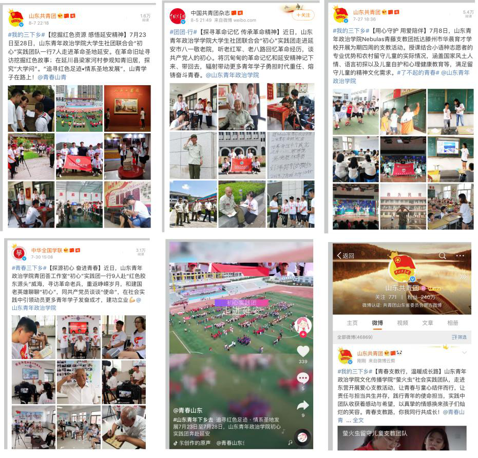 中华全国学联、中国共青团杂志、山东共青团等团属新媒体平台对我校社会实践报道
