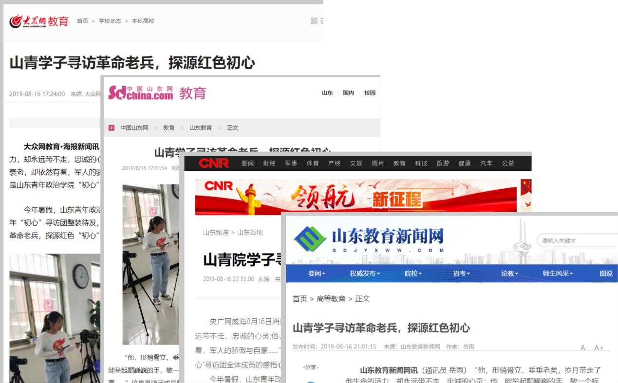 中国教育电视台、山东教育新闻、教育部语言文字报等新媒体平台对我校社会实践报道