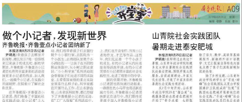 齐鲁晚报:《山青院社会实践团队暑期走进泰安肥城》