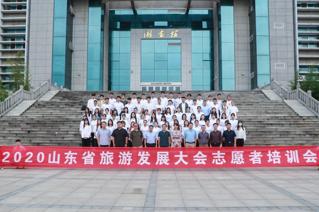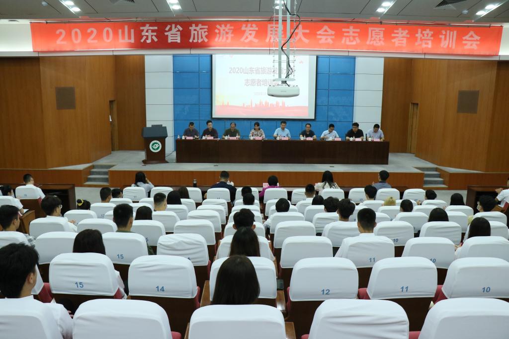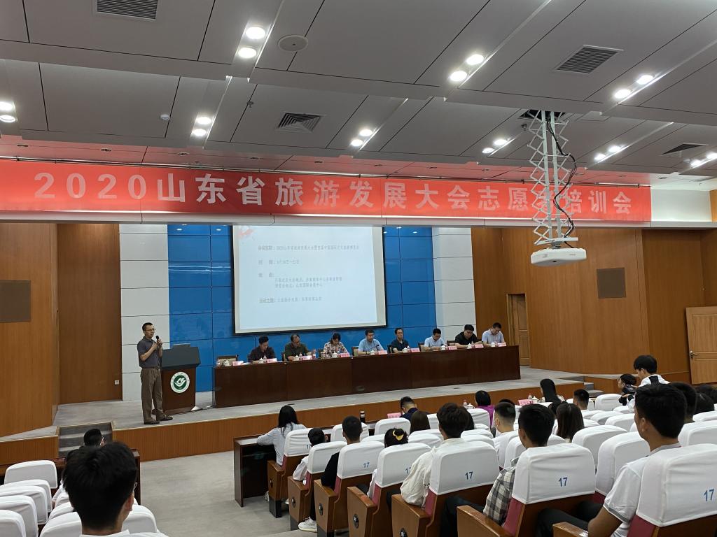 2020山东省旅游发展大会将于9月中旬举办,志愿服务是确保大会圆满完成的重要一环节。为了更好地提高志愿者团队的服务意识,提升服务能力,建设一支高素质、肯担当、爱奉献的大会志愿者队伍,9月12日上午,2020山东省旅游发展大会志愿者培训会在我校成功举行。团市委志愿者工作部部长刘江、济南市文旅局广电处处长韩波以及外联处相关负责同志、出版集团数字出版中心总经理张承军、济南工程职业技术学院团委书记刘晓平、山东青年政治学院团委书记孟祥佳、政治与公共管理学院党总支副书记王正坤及部分教师出席本次会议,包括政治与公共管理学院30名学生骨干、青年领导力学位班10名优秀学员以及济南工程职业技术学院的40名志愿者在内的80名大会志愿者共同参加本次培训。