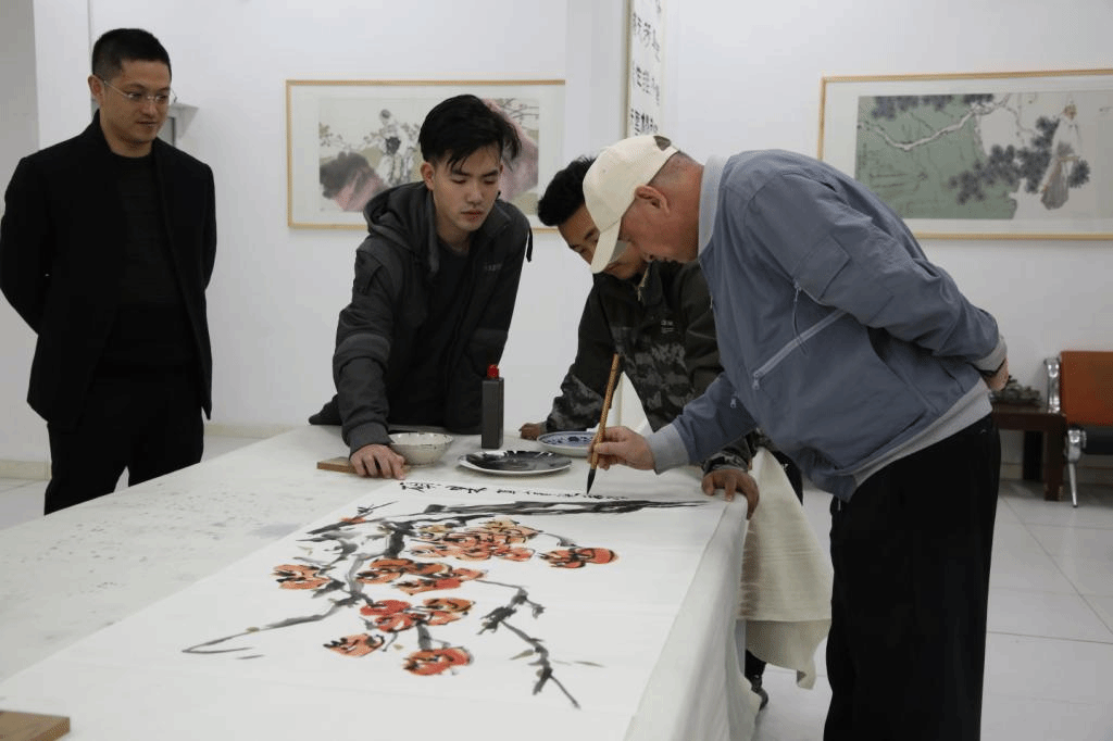 座谈会前,王维星一行在党委副书记高峰陪同下参观了舞蹈学院荣誉室、青年众创基地和设计艺术实验中心,王维星先生在设计艺术实验中心现场作画《硕果》,以此祝福母校硕果累累,永攀高峰。