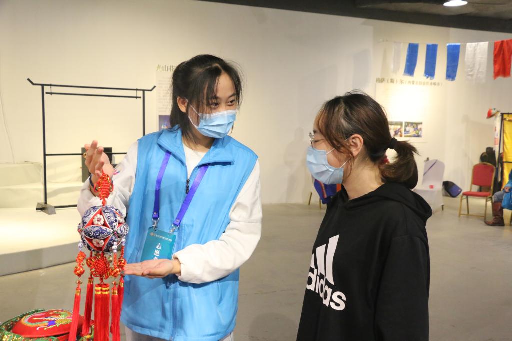 在志愿服务工作之余,雏鹰志愿者把握机遇,将博览会作为知识水平提升、素质能力拓展的第二课堂,跟随习近平总书记的“非遗”足迹,感受中华文明5000多年的历史变迁,探索中华民族独特的精神标识。经过与承办单位、传承人充分沟通和学习,10月24日,雏鹰志愿者在博览会主会场进行了一场微博直播。通过接力讲解的形式,将“感受习近平总书记的非遗情缘”、“黄河流域振兴传统公益展”、“非遗助力精准扶贫”三大板块,“河洛文化”、“关中文化”、“齐鲁文化”、“河湟文化”四大文化以及总书记为之点赞的十几项非物质文化遗产项目一一展示出来。这场志愿服务之外的直播项目,观看量近7000,受到了校内外关注和一致好评。同时,志愿者们还精心设计调查问卷,与非遗传承人展开交流,深入了解非遗文化,近距离接触、感受非物质文化遗产独特的魅力及“非遗”博大精深的内涵,探索发挥专业优势做非遗文化弘扬者的路径。2018级应用德语专业崔存仓同学激动地说:“志愿服务过程中,我始终带着对志愿服务的热爱,始终怀揣对非遗的敬仰。在宣传册装袋工作中我了解到多彩且独特的非物质文明,来自五湖四海的匠人各具特色的行头开阔了我的眼界,不禁感慨华夏文明之悠久和璀璨。线下感悟、线上解说,这些活动能够让非遗不仅活在历史中,更活在时代下。这是一次生动的爱国主义教育课,教会我们不忘初心,带着文化自信砥砺前进。”