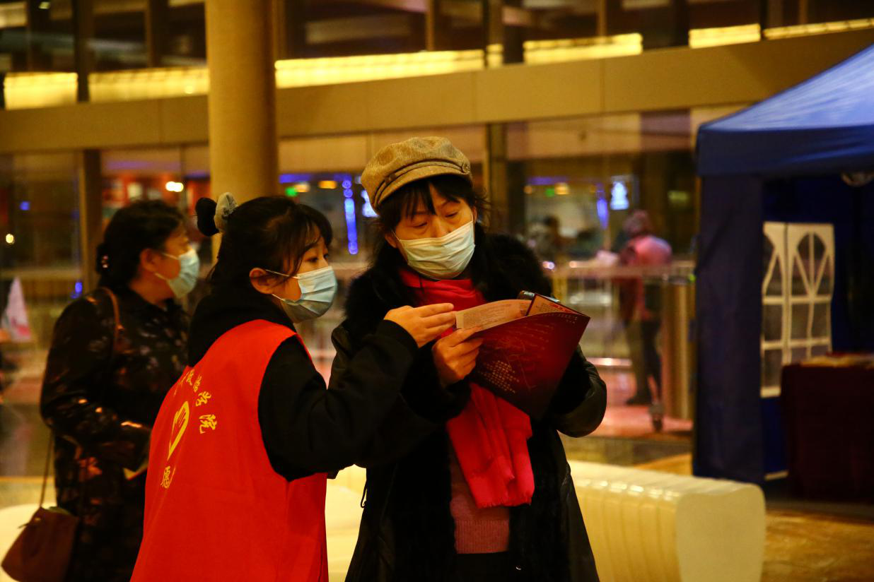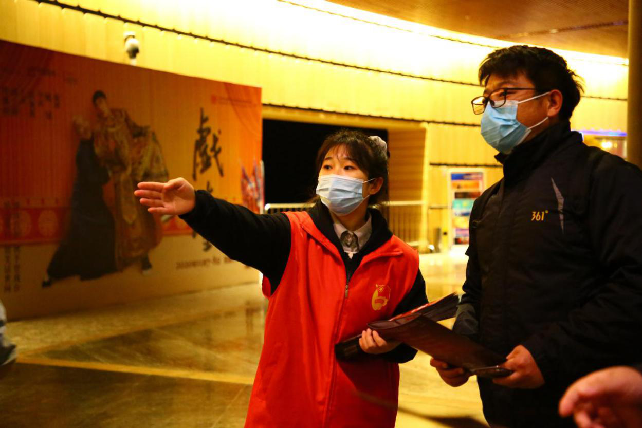 到达省会大剧院后,经过任务分配,30名志愿者有序分为15个小组,奔赴各自岗位。在剧院十字路口、停车场、电梯门口、小径、检票口等各个角落,处处可见“红马甲”志愿者们忙碌的身影。
