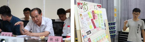 成果汇报会上,来自产品设计、视觉传达设计、环境设计的不同年级同学组成的六个团队分别从红色文化、文化旅游和乡村振兴三个角度汇报了各自的设计过程及成果。陈雨海对同学们的作品给予较高的评价,他指出本次工作坊对蒙阴岱崮镇的振兴发展有较强的实践意义,工作坊要结合当地民宿文化、红色文化、饮食文化、蜜桃文化等较强的地域特点深入拓展,将设计创意与地方对接落地,更好地助力地方发展。