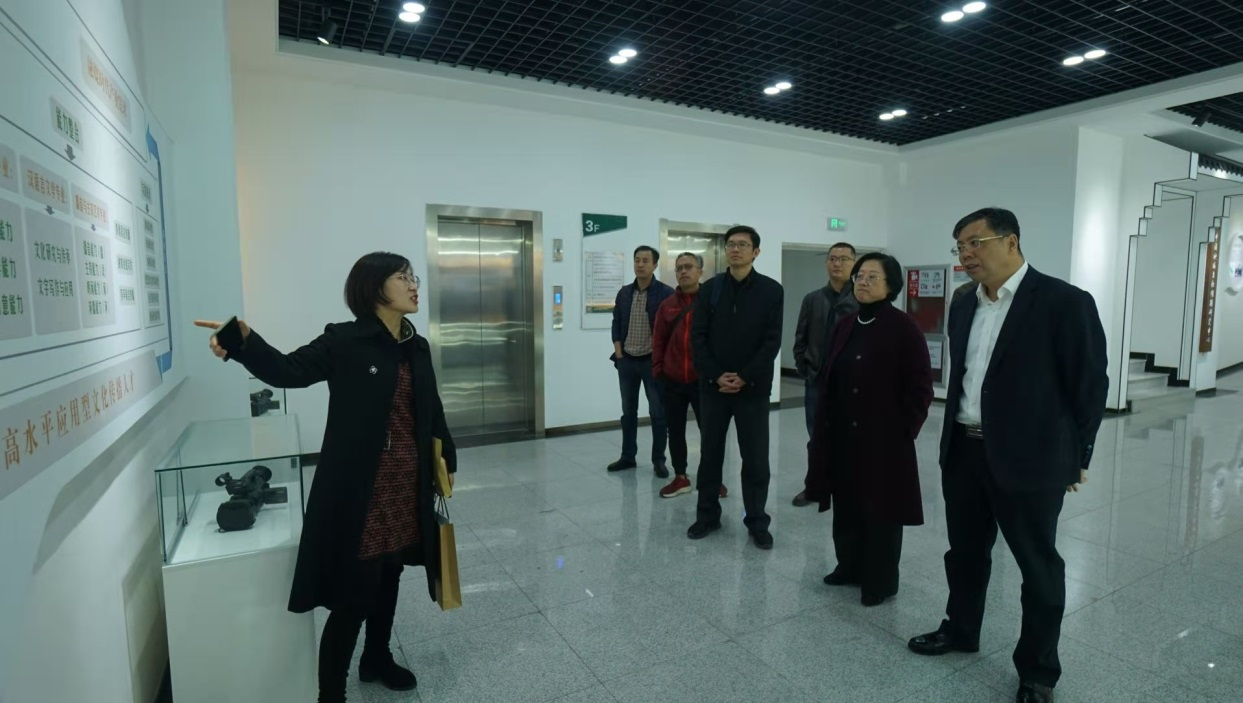 继文化传播学院到大众日报融媒体中心考察学习后,大众报业集团融媒体中心主任曲涛、副主任王冰、主任编辑杨新会及融媒体中心综合部、技术部、信息部负责人一行7人,来到文化传播实验中心进行了深入考察和座谈。