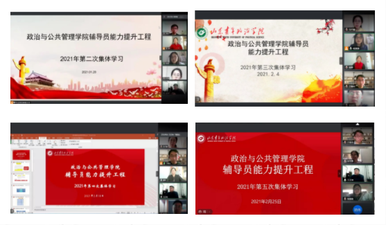 为深入扎实推进学院辅导员能力提升筑基工程,全面提升思想政治工作队伍素质,自2021年1月份以来,政治与公共管理学院利用寒假时间,系统开展了“政成长”辅导员能力提升系列沙龙。沙龙以“专业介绍、文件学习、研讨总结”为内容形式,截止目前共举办5期,取得阶段性进展。