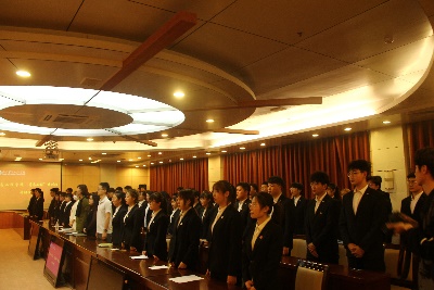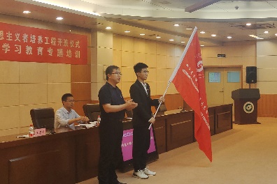 在中国共青团团歌的音乐声中,学院“青马工程”培训班正式拉开了帷幕,全体成员起立奏唱团歌。会上,学院党总支书记王黎峰为“青马工程”培训班授旗。学院党总支副书记马骋介绍了“青马工程”基本情况,明确培训目标,强调培训纪律。2019级信息管理与信息系统二班张世怡代表全体学员进行发言,随后全体成员庄严宣誓。
