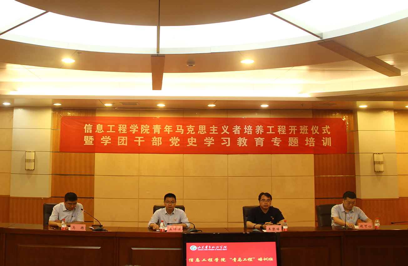 为深入推进党史学习教育,提高团学骨干和广大团员青年的思想政治素质,做实做细青年马克思主义者培养工作,5月19日下午信息工程学院在图书馆学术报告厅举办“青马工程”培训班开班仪式暨学团干部党史学习教育专题培训。校团委书记孟祥佳、信息工程学院党总支书记王黎峰、党总支副书记马骋、学院全体辅导员、党员发展对象、入党积极分子和学团骨干参加本次会议。