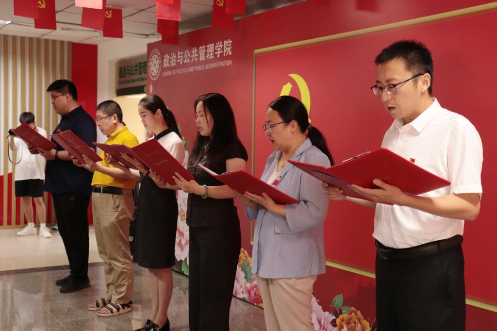 百年大党风华正茂,百年初心矢志不渝。为热烈庆祝中国共产党成立100周年,进一步强化党员宗旨意识、身份意识和责任意识,7月1日上午,政治与公共管理学院师生党员在敏行楼一楼大厅举办“建党百年忆峥嵘,政治生日铭初心”特别主题党日活动。活动由学生第二党支部书记庞翠主持。