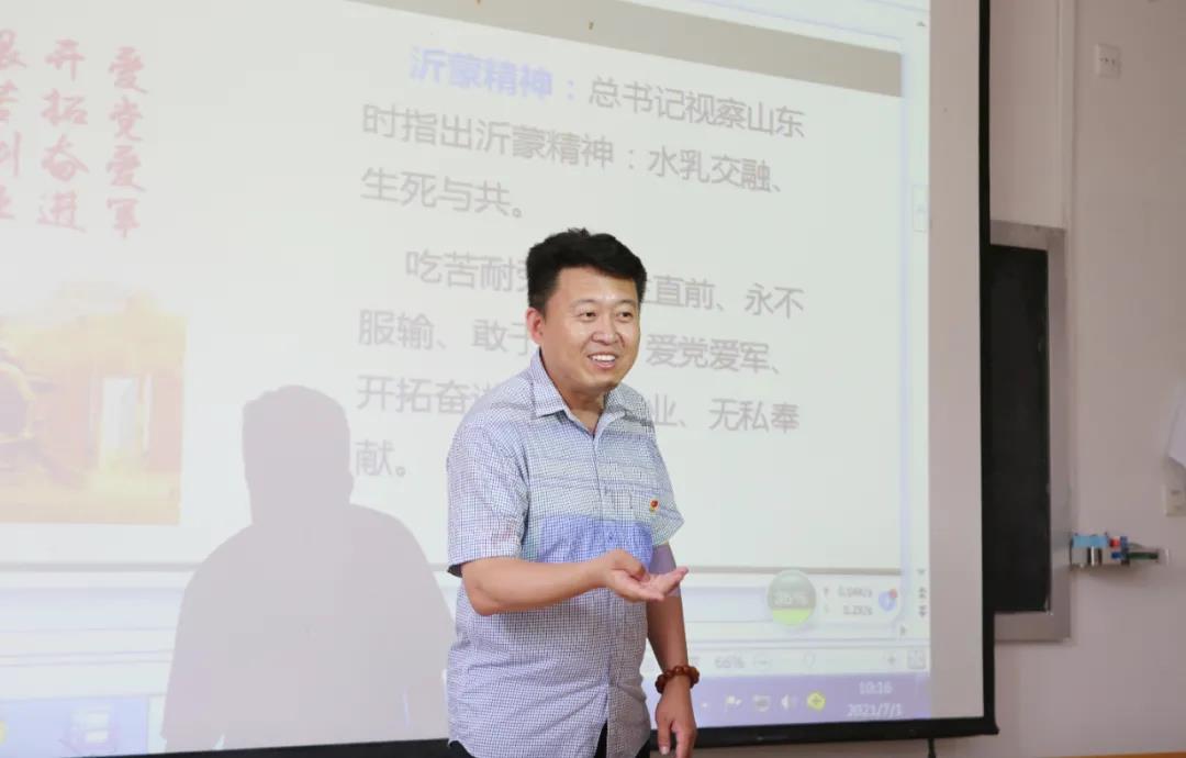 为庆祝中国共产党成立100周年,扎实开展党史学习教育,7月1日,舞蹈学院党总支副书记、学生党支部书记赵金怀在双馨楼202教室,为学院学生党员、积极分子召开了一场别具意义的沂蒙精神的主题党课。