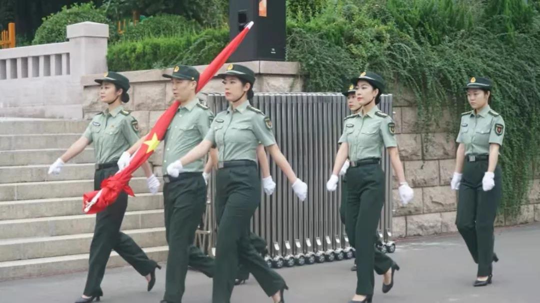 上午8时,在庄严的国歌声中举行升旗仪式,鲜艳的五星红旗冉冉升起,全体师生齐唱国歌,行注目礼。