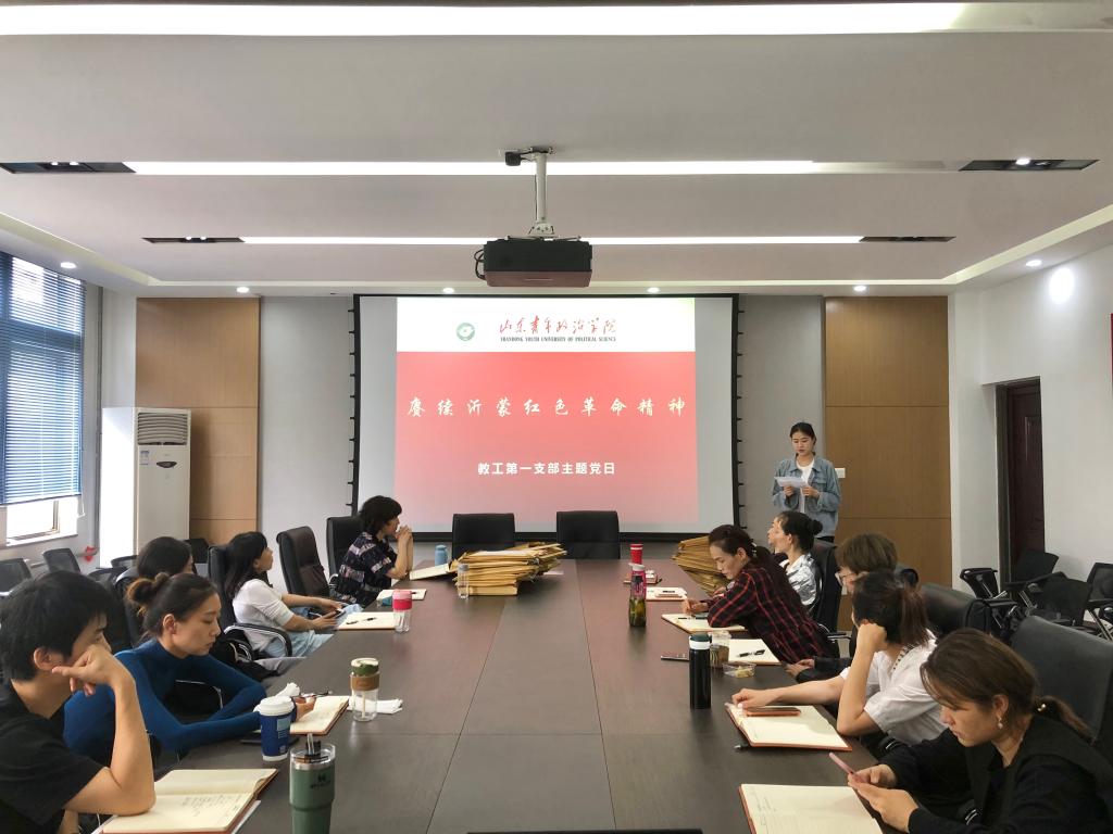教工第一党支部副书记胡祖鑫说道:“聆听四位同学对暑期沂蒙精神社会实践的分享,感触颇深,这种红色革命精神都应是刻在骨子里的东西,我们要将它充分发挥到今后的工作、学习中,更重要的是要将这种精神传递给我们身边的每一个人。作为一名党员教师,更要不忘初心、牢记使命,将红色革命精神践行到行动中去,充分继承和发扬党的优良传统。”