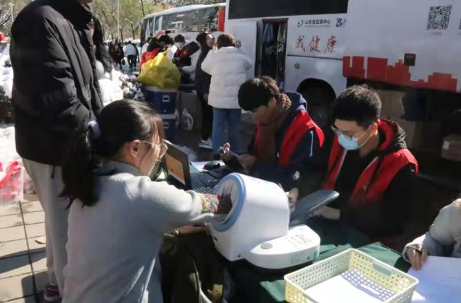 疫情防控期间,为确保各位师生的安全与健康,学校与山东省血液中心协作,对献血车进行了全方位消毒杀菌,在献血前进行填表、体检等准备工作,安排志愿者引导献血者有序排队,等待献血。在活动现场,气温的骤降抵挡不住无偿献血师生的热情,在献血车前排起一条“长龙”,在献血的队伍中,既有第一次献血的新面孔,也有多次献血的老面孔;既有正在跑步打卡的热血青年,也有抱着课本匆忙备考的考研学子;既有刚刚下课的教学老师,也有校园中物业保安等后勤保障人员。在献血的前一天济南迎来了初雪,各位献血者踏雪而来,车外冰雪在融化,车内爱心在流淌。每一位完成献血活动的师生的脸上都洋溢着满足与欢乐,医护人员与志愿者也耐心地嘱咐师生们献血的相关事项,确保献血工作顺利有序进行。