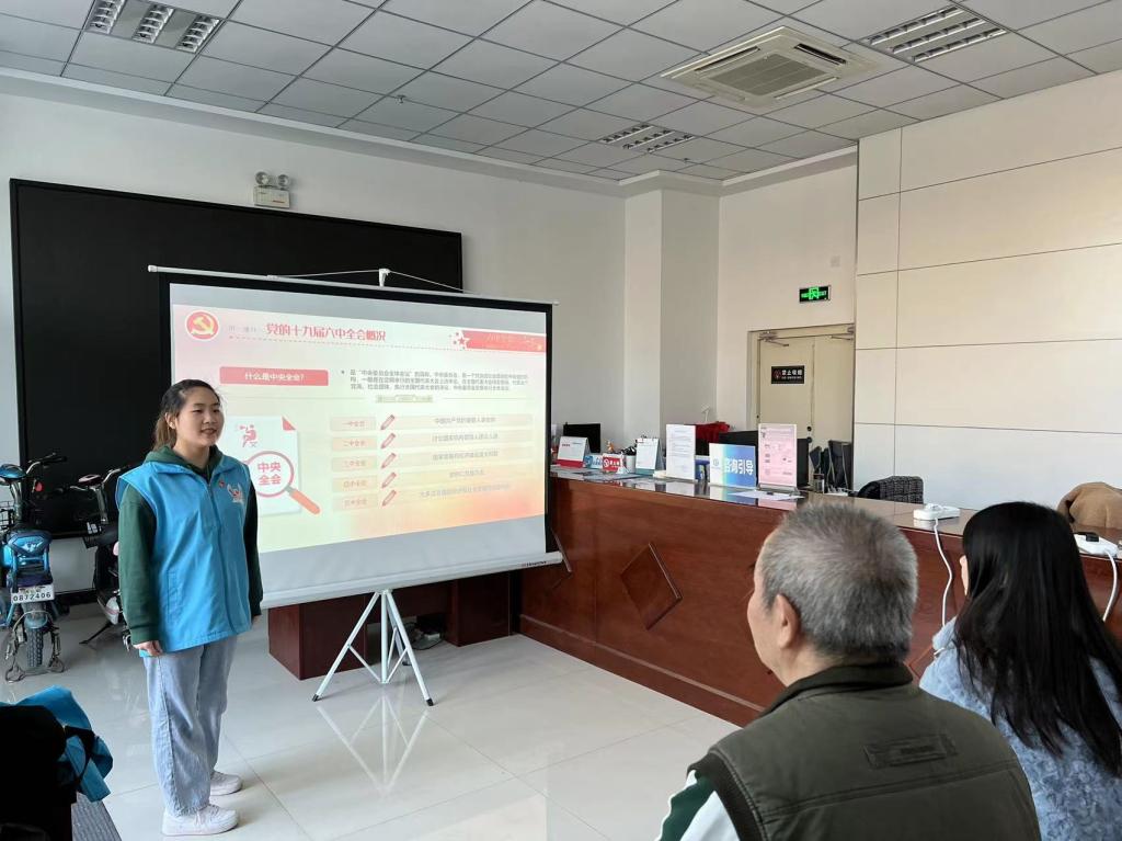 学生志愿者张津豪参加了宣讲后的志愿服务活动,他说:“我第一次参加社区志愿服务活动,很激动。我帮助几位老人下载并注册国家反诈中心APP,告诉他们如何使用并得到了老人们的感谢,自豪感油然而生,我将坚持初心,努力服务好有需要的人。”学院组织员工作室负责人彭梦迪表示:“面向社区居民群众,高校师生有责任有义务,用通俗易懂的语言宣讲好全会精神,推动习近平新时代中国特色社会主义思想深入群众、深入基层、深入人心。下一步也会引导学生党员把思想和行动统一到全会精神上来,增强学生党支部的凝聚力、号召力,把党的声音讲到群众的心坎去,切实提高社区百姓的获得感、安全感。”
