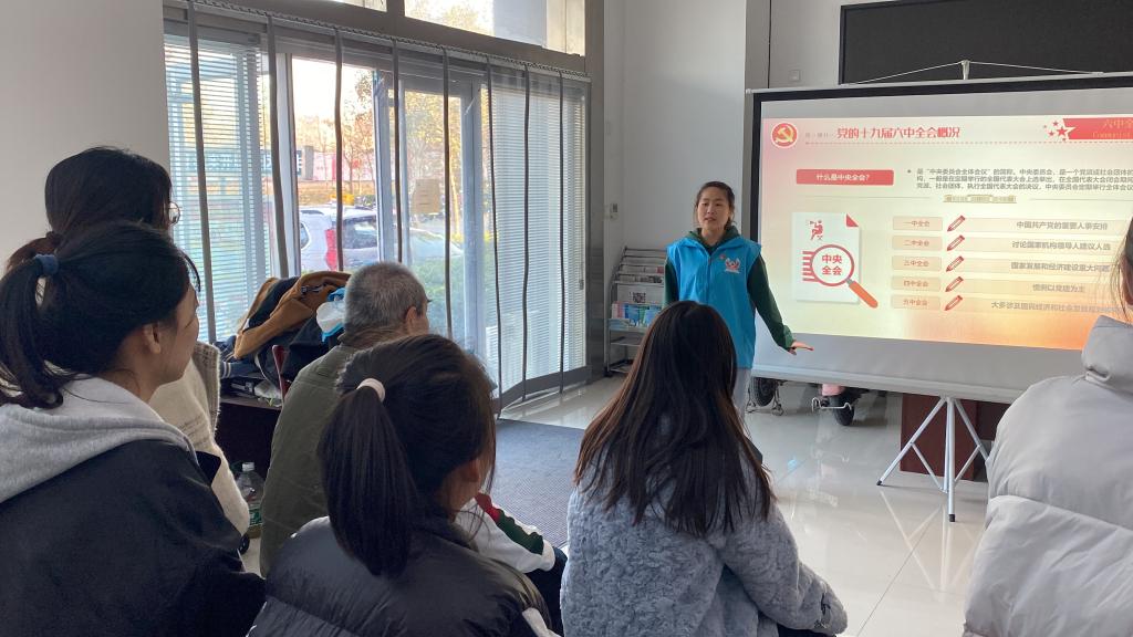 次日,根据党建共建协议的部分约定,外国语学院组织学生党员领航员、志愿者开展了以“悟初心、践使命”为主题的党的十九届六中全会精神宣讲活动,通过面对面讲党课的形式,使社区居民对党的十九届六中全会精神有了更加深刻的认知与了解。外国语学院党员领航员姜圣莹在宣讲后说:“党的十九届六中全会是党和国家政治生活的中的一件大事,今天的宣讲活动让我有了一次生动的社会体验。在场的爷爷奶奶们对于我们的宣讲表现出了极大的兴趣与参与热情,在跟他们交流的过程中我深切感知到自己何其有幸能够生在这个时代,我由衷地产生了一种自豪感与使命感,我将努力学习专业知识,把伟大的建党精神传承下去。”