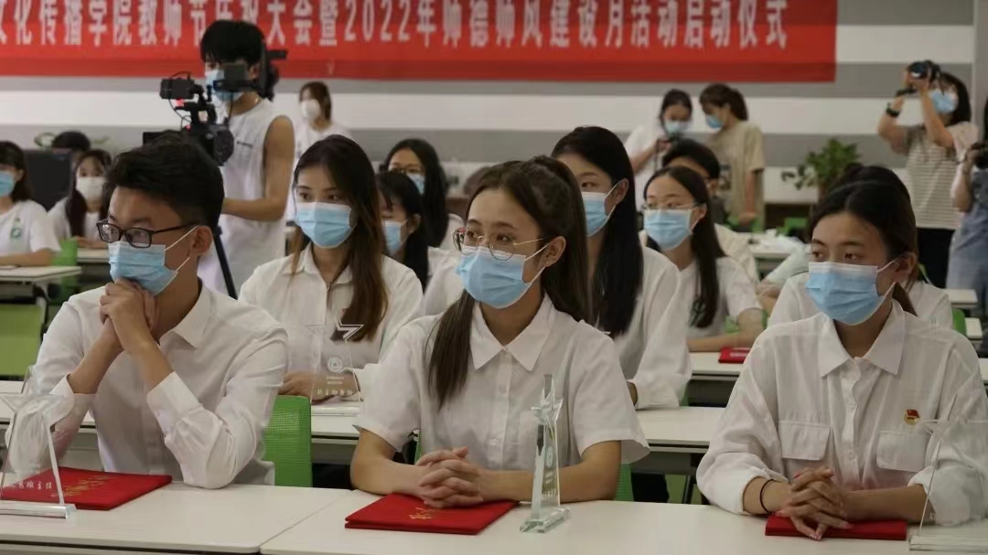 9月8日下午,文化传播学院召开教师节庆祝大会暨2022年师德师风建设月活动启动仪式。校党委委员、纪委书记崔连富,文化传播学院领导班子成员,全体教师及部分学生党员、学生骨干参与本次会议。受疫情影响,会议通过线上线下相结合的形式展开,同时面向全学院学生进行网络直播。会议由文化传播学院党委副书记李杨主持。