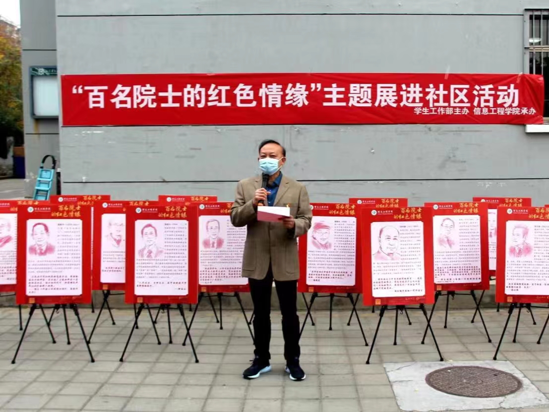 为认真学习、广泛宣传、深入贯彻党的二十大精神,全面落实学校党委关于开展学习宣传贯彻党的二十大精神的工作安排,按照学校《关于开展“青春献礼二十大,强国有我新征程”学习宣传党的二十大主题宣传教育活动的通知》要求,11月10日,学校启动“百名院士的红色情缘”主题展进社区活动。此项活动由学生工作部主办、信息工程学院承办,旨在回望中国科技发展史上那些坚卓深邃的红色足迹,向同学们呈现科学家们在科研创新一线躬行求索、忘我奉献的精神风范,激励大家勇于挑战、迎难而上,坚定理想信念、强化担当作为,将红色精神发扬光大。学生工作部副部长李洪,信息工程学院党委副书记马骋、学院全体辅导员及学生代表参加了启动仪式。