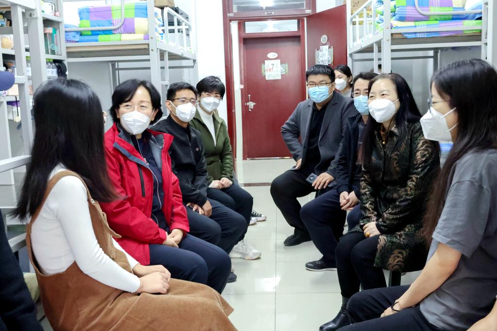 11月20日下午,学校党委书记魏艳菊深入学生宿舍,认真听取同学们对线上教学、生活保障、宿舍关系、疫情防控等方面的意见建议,与同学们暖心交流、解惑释疑。
