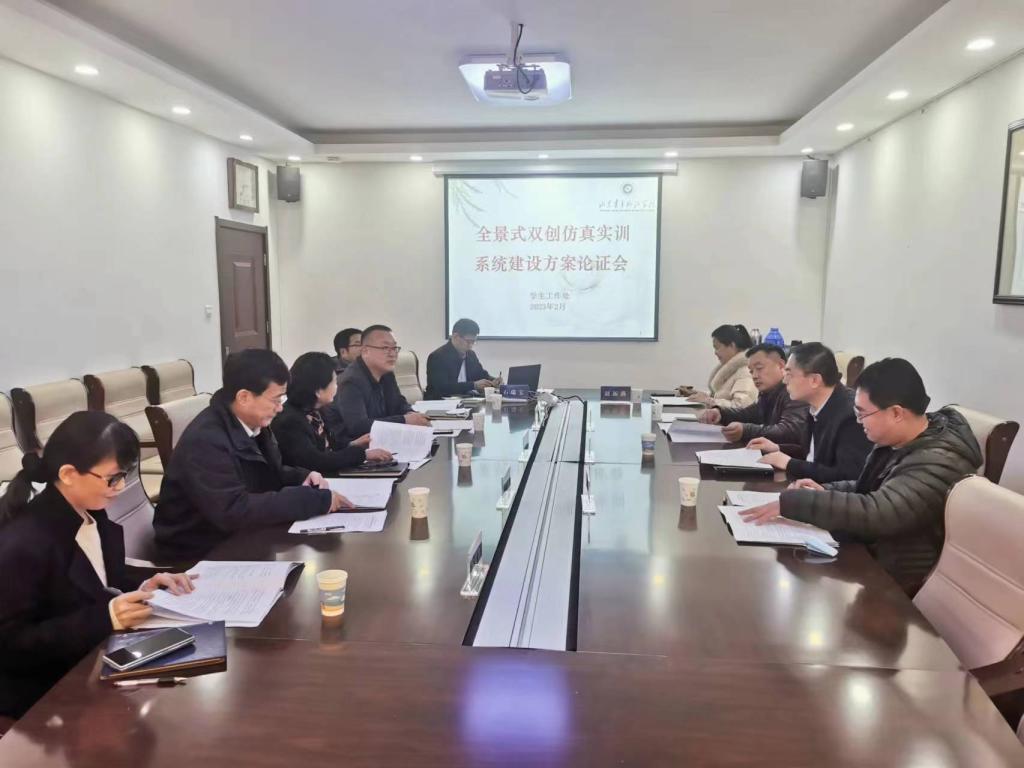 2月21日,我校在第三会议室召开全景式双创仿真实训系统建设论证会。论证会邀请校内外7位专家对项目进行了论证,学校党委副书记高峰出席论证会。