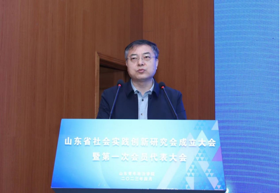 学校党委副书记高峰在大会上作了热情洋溢的致辞,介绍了学校的办学特色和近几年取得的办学成绩。他指出,山东正处在全面深化改革和推动经济文化强省建设的关键时期,充分发挥社会实践创新在挖掘教育资源、引领前进方向、凝聚奋斗力量、推动事业发展方面的重要作用,具有十分重要的意义;学校党委对研究会的成立高度重视、全力支持,这既是履行人才培养、实践育人功能的职责所在,也是加强学科专业建设,推动学校高质量发展的内在要求。希望学校以研究会为纽带,通过构建具有我省地域特色的社会实践创新体系,创新社会实践活动模式,提升实践育人效果。