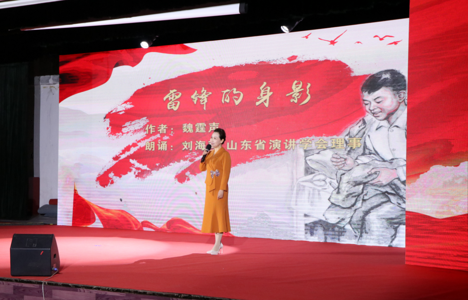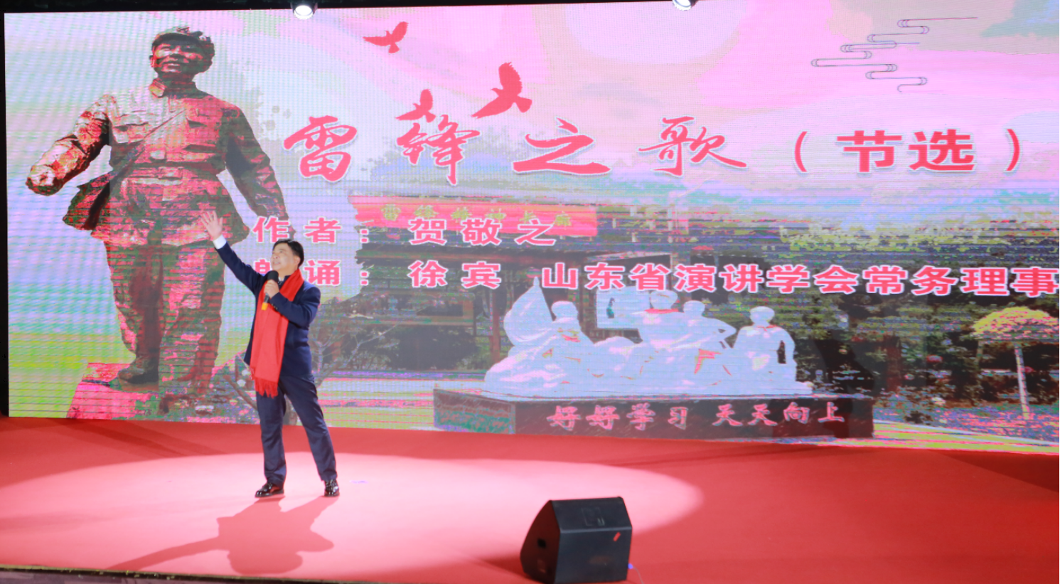 为深入学习贯彻习近平总书记关于弘扬雷锋精神的重要论述和对深入开展学雷锋活动的重要指示要求,4月6日,我校在大学生活动中心成功举办雷锋精神诗歌朗诵会,本次活动得到了山东立德树人学会、山东省演讲学会、雷锋杂志社山东工作部大力支持。中宣部所属《雷锋》杂志社副总编、济南军区原宣传部部长张振江,学校党委副书记高峰,山东立德树人学会副会长兼秘书长沈大光,山东省演讲学会会长武传涛,学校党委委员、组织部长、宣传部长蒋涛涛,学校团委书记孟祥佳参加活动。中国《雷锋》杂志封面人物、中华慈善奖获得者张丰,《雷锋》杂志社山东工作部顾问师继魁作为模范人物代表出席。
