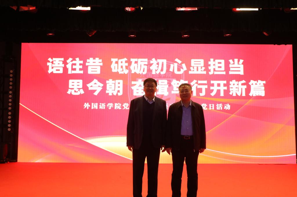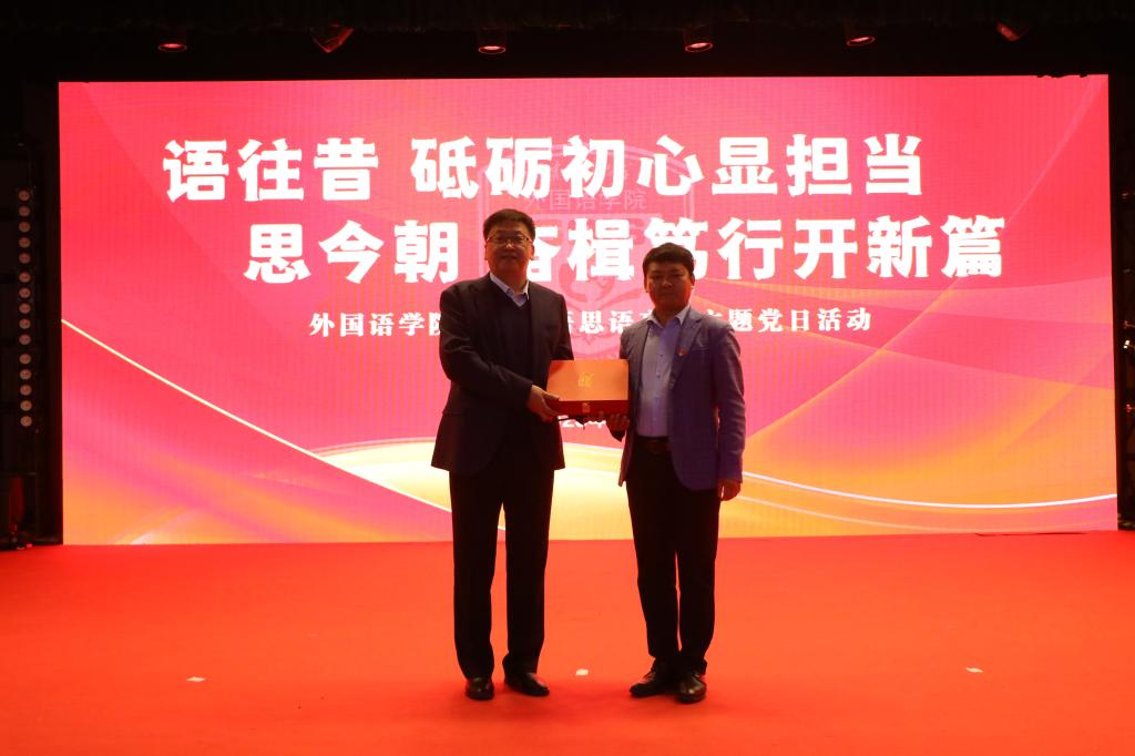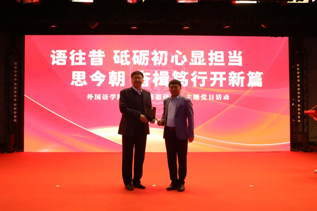 为深入学习贯彻党的二十大精神,引导师生从学院发展奋斗历史中汲取力量,学习先进典型,坚定理想信念,4月13日,在全党深入开展学习贯彻习近平新时代中国特色社会主义思想主题教育的重要时刻,外国语学院党委召开“语往昔,砥砺初心显担当;思今朝,奋楫笃行开新篇”——“语思语享”主题党日活动,为退休教师举行光荣退休仪式,召开疫情防控工作表彰会。学校党委副书记高峰,国际交流处副处长徐磊田、刘敏,外国语学院党政班子、全体教职工、部分学生参加活动。活动由学院党委书记范红伟主持。