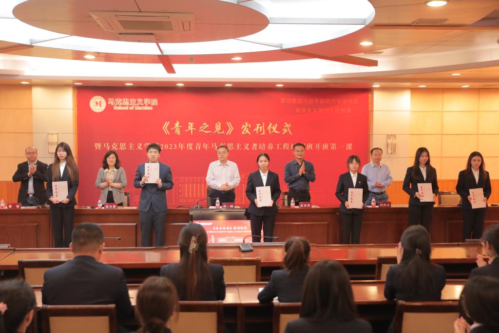在全校深入开展学习贯彻习近平新时代中国特色社会主义思想主题教育之际,为贯彻坚持学思用贯通、知信行统一的理论学习方法,5月11日,马克思主义学院举办《青年之见》发刊仪式,学校党委副书记高峰,学校党委委员、组织部部长、宣传部部长蒋涛涛,马克思主义学院领导班子成员出席发刊仪式。