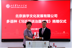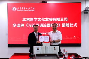 7月4日,学校在办公楼第七会议室举行多语种《习近平谈治国理政》图书捐赠仪式。北京崇学文化发展有限公司向学校捐赠多语种《习近平谈治国理政》338册。
