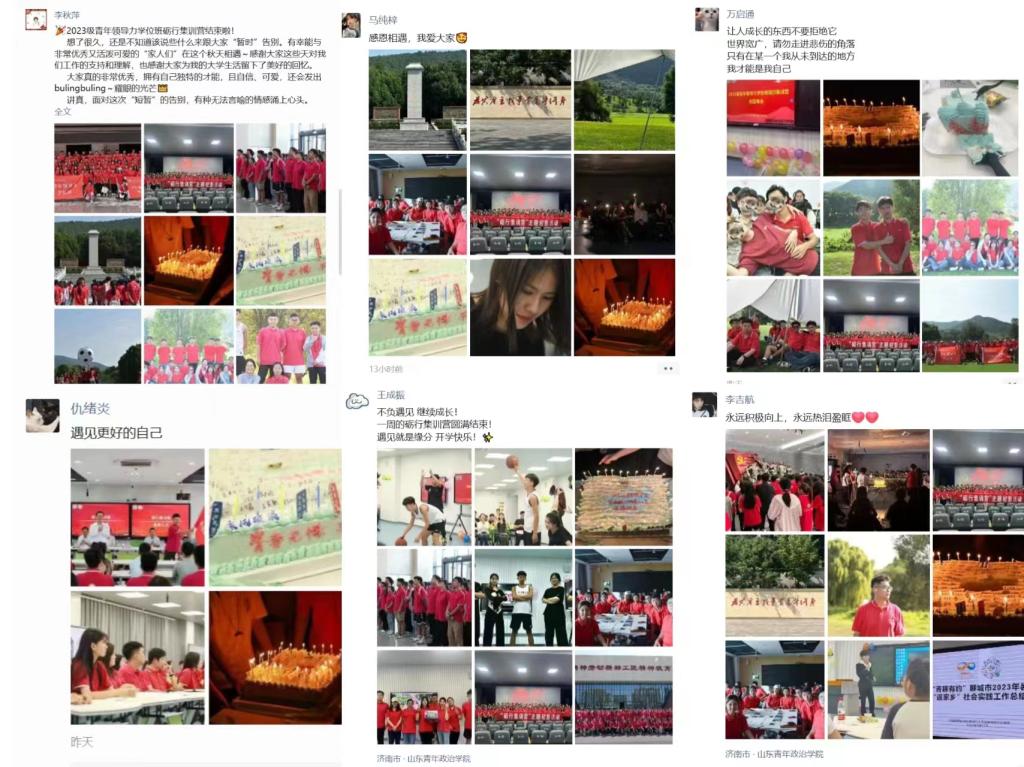 此次“砺行集训营”走进了崮云湖素质拓展基地、长清大峰山革命根据地纪念馆、劳模精神劳动精神工匠精神教育基地,开展了红色观影、校园红书坊等形式多样的校内实践活动,在实践拓展中培养了学员社会责任感、创新精神、领导决策能力和团结协作能力。在素质拓展中,学员们进行了露营体验、飞盘嘉年华、KIN-BALL等专业户外体验式培训课程,大家互帮互助、互相鼓励,锻炼了团结协作能力和沟通交流能力,学员们在素质拓展中增强了体魄,增强了学位班向心力;在长清大峰山革命根据地,学员们通过实地参观根据地,感受“信仰如山、一心为民、不怕牺牲、勇往直前”的大峰山精神,接受革命历史教育;在劳模精神劳动精神工匠精神教育基地,学员们通过实地参观,自觉接受劳模精神、劳动精神、工匠精神的洗礼,推动学生进一步激发见贤思齐的正能量,焕发劳动奋进的精气神;学位班开设特色晚自习,即校园红书坊和红色观影活动,形式为大学生群体喜闻乐见,激发了学员的参与热情,提高了学员的理论素质、政治素质和综合能力。