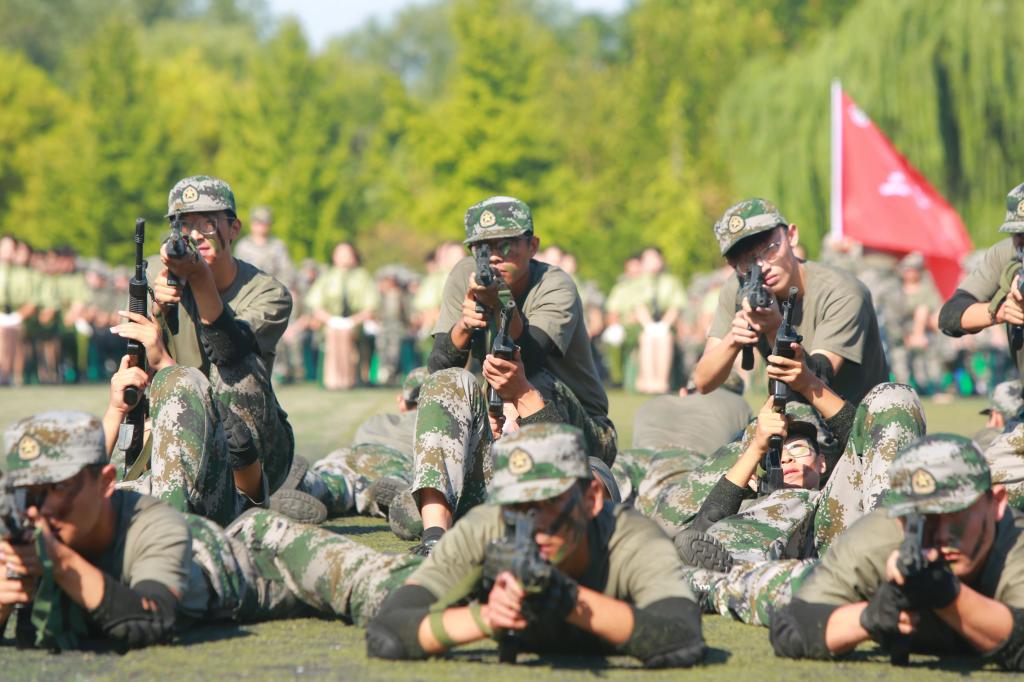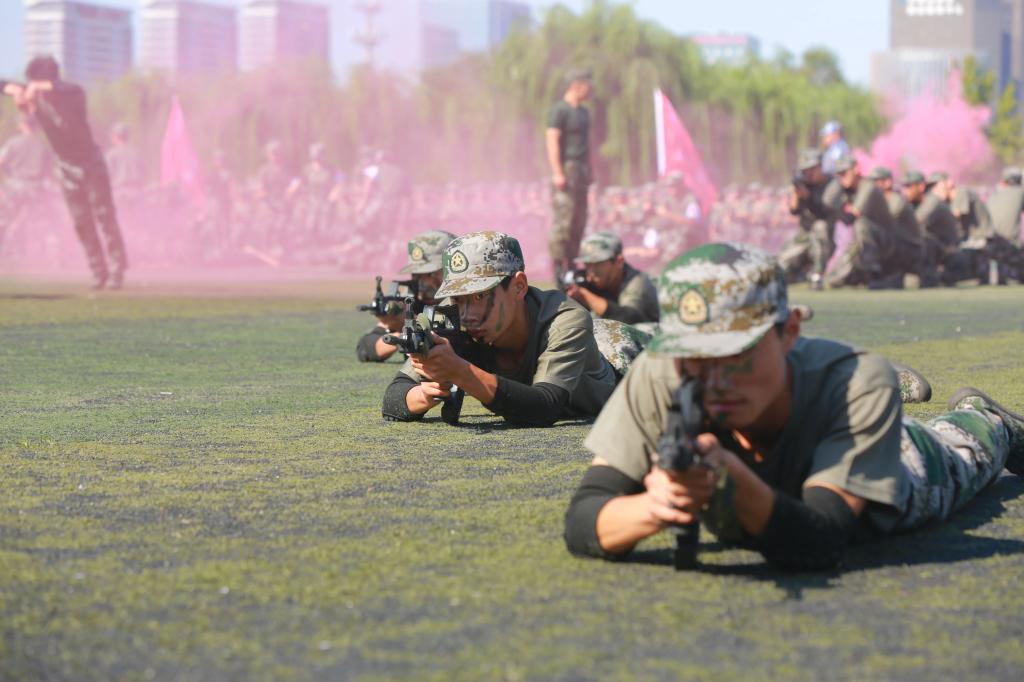 戎装英姿,气势如虹。分列式一一走过主席台,新生们带来了礼仪操、捕俘刀、战术演练、队列展示等科目汇报,一招一式、一起一落,彰显了势不可挡的锐气。