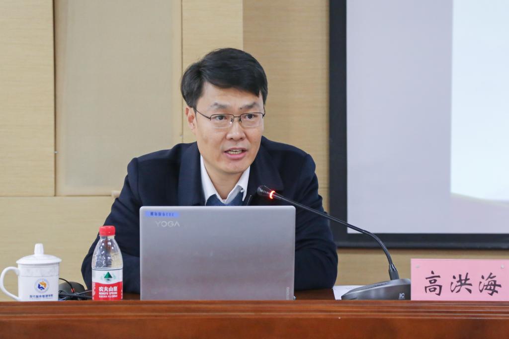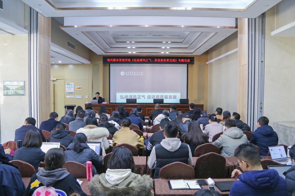 为坚持不懈强化理论武装,持之以恒强化正风肃纪,推动全面从严治党向纵深发展,11月16日下午,学校党委委员、纪委书记、省监委驻学校监察专员高洪海到现代服务管理学院讲授专题党课。活动由现代服务管理学院党委纪检委员、副院长李丽主持,学院全体教师参加。