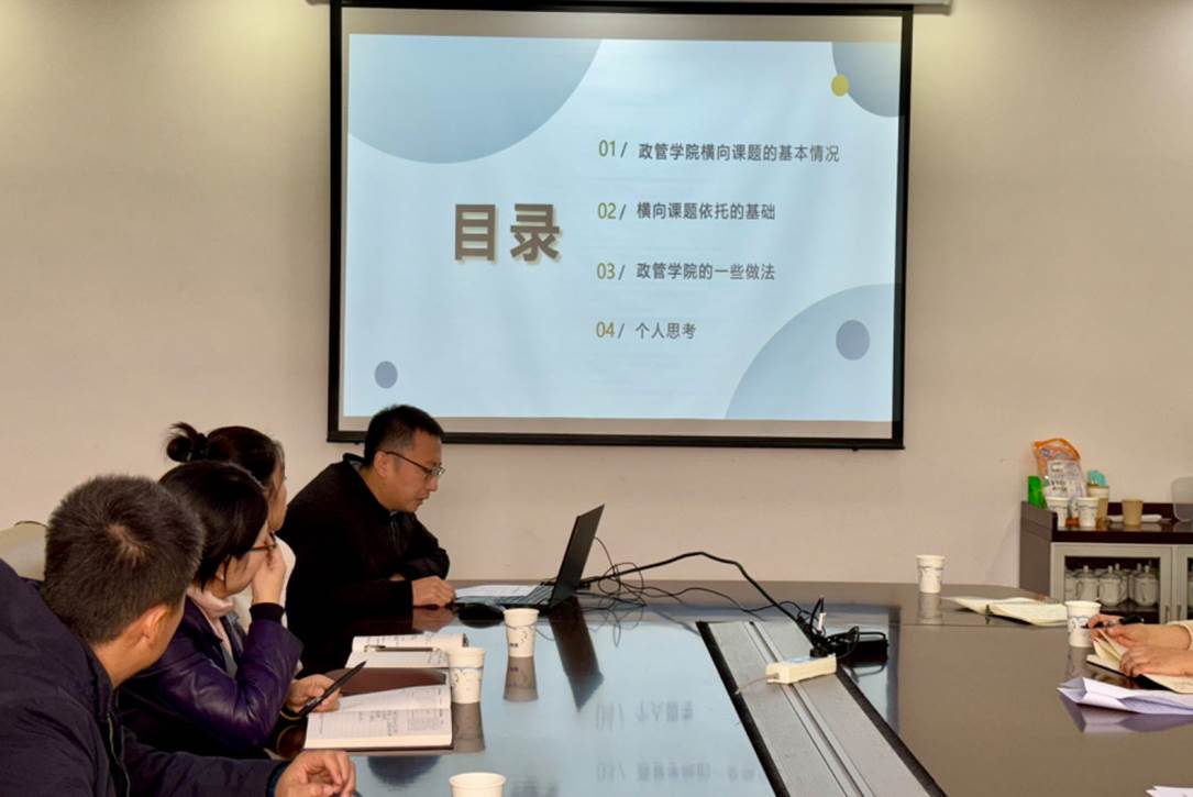 会上,政治与公共管理学院副院长卢鹏程、设计艺术学院副院长沈路就横向课题高质量发展方面的经验做法进行了交流。