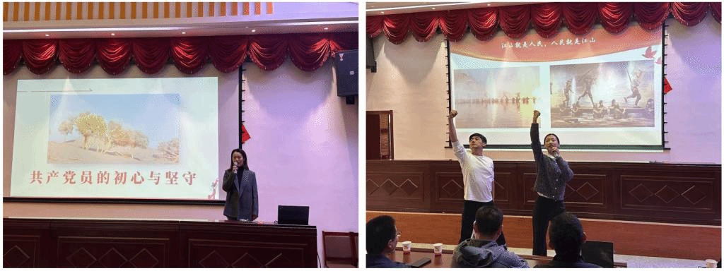 党课展演,传承初心担使命。本次培训特意邀请首届党务素质能力大赛的四名同志依次带来《“杨柳”的初心与坚守》《<觉醒>—新青年觉醒新时代》《接力》《他们的姿态》,她们把党的故事、革命的故事、英雄的故事生动深刻地带给现场学员。大家在“党味”浓、“鲜味”足的沉浸式党课中经受了一次难忘而深刻的精神洗礼、思想升华,展现了党员同志们昂扬向上、积极进取的精神风貌。