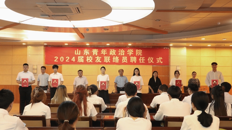 聘任仪式上,对外合作办公室主任、继续教育学院院长张承刚宣读了《山东青年政治学院校友联络员聘任办法》。教务处副处长田钰佳宣读了《关于聘任山东青年政治学院2024届校友联络员的决定》,与会领导为校友联络员代表颁发聘书。