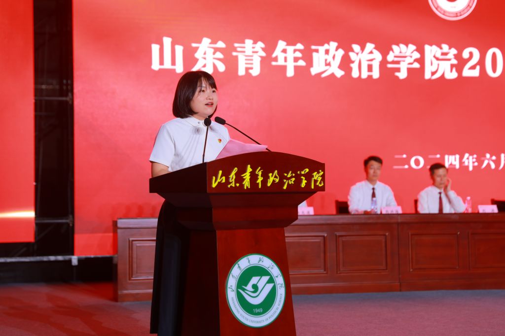 党委副书记、院长辛杰宣读《山东青年政治学院关于准予赵椿婷等2024届本科毕业生毕业的决定》。党委委员、副院长于秀国宣读《共青团山东青年政治学院委员会关于表彰2024年“大学生志愿服务西部计划”优秀志愿者的决定》《山东青年政治学院关于表彰2024届省级优秀毕业生的通报》《山东青年政治学院关于表彰2024届校级优秀毕业生的决定》。学校领导依次向优秀志愿者代表、优秀毕业生代表颁发荣誉证书。
