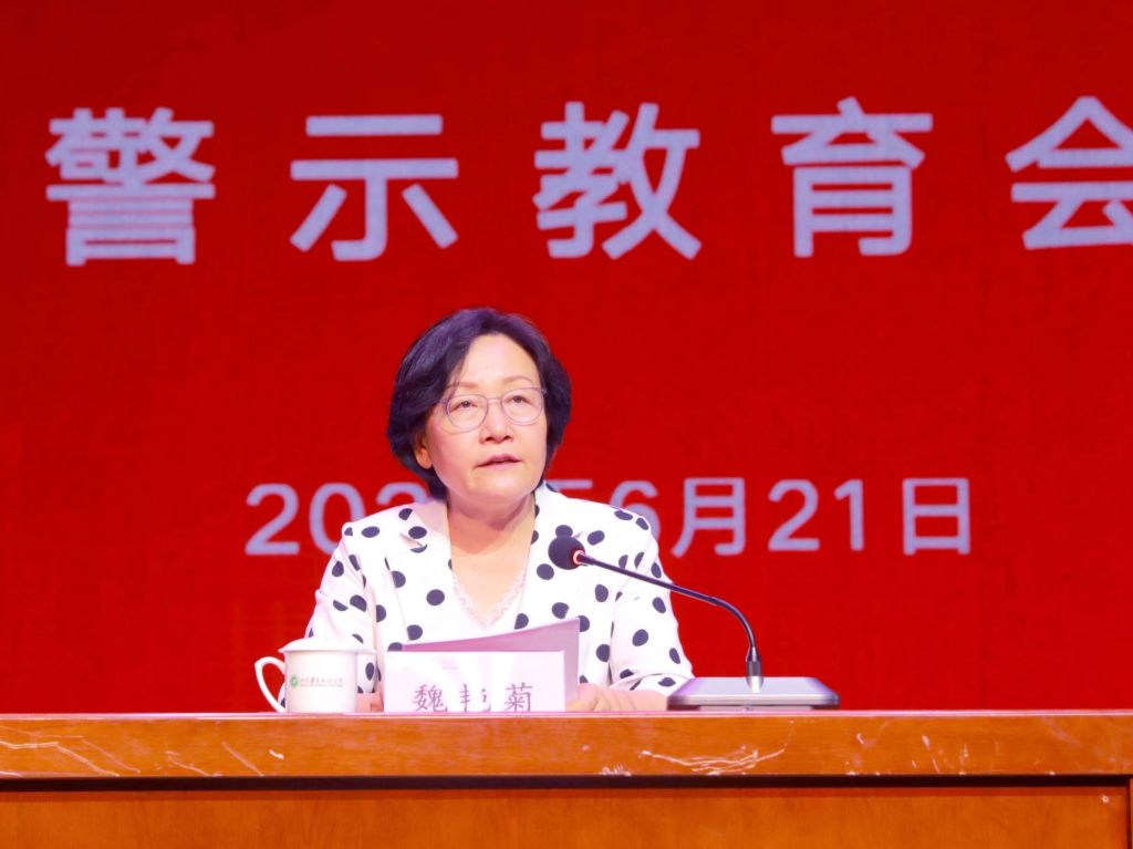 为进一步加强警示教育,推动党纪学习教育深入开展,6月21日,学校召开警示教育会。党委书记魏艳菊出席会议并讲话,党委副书记、院长辛杰主持会议,学校党委领导班子成员出席会议。