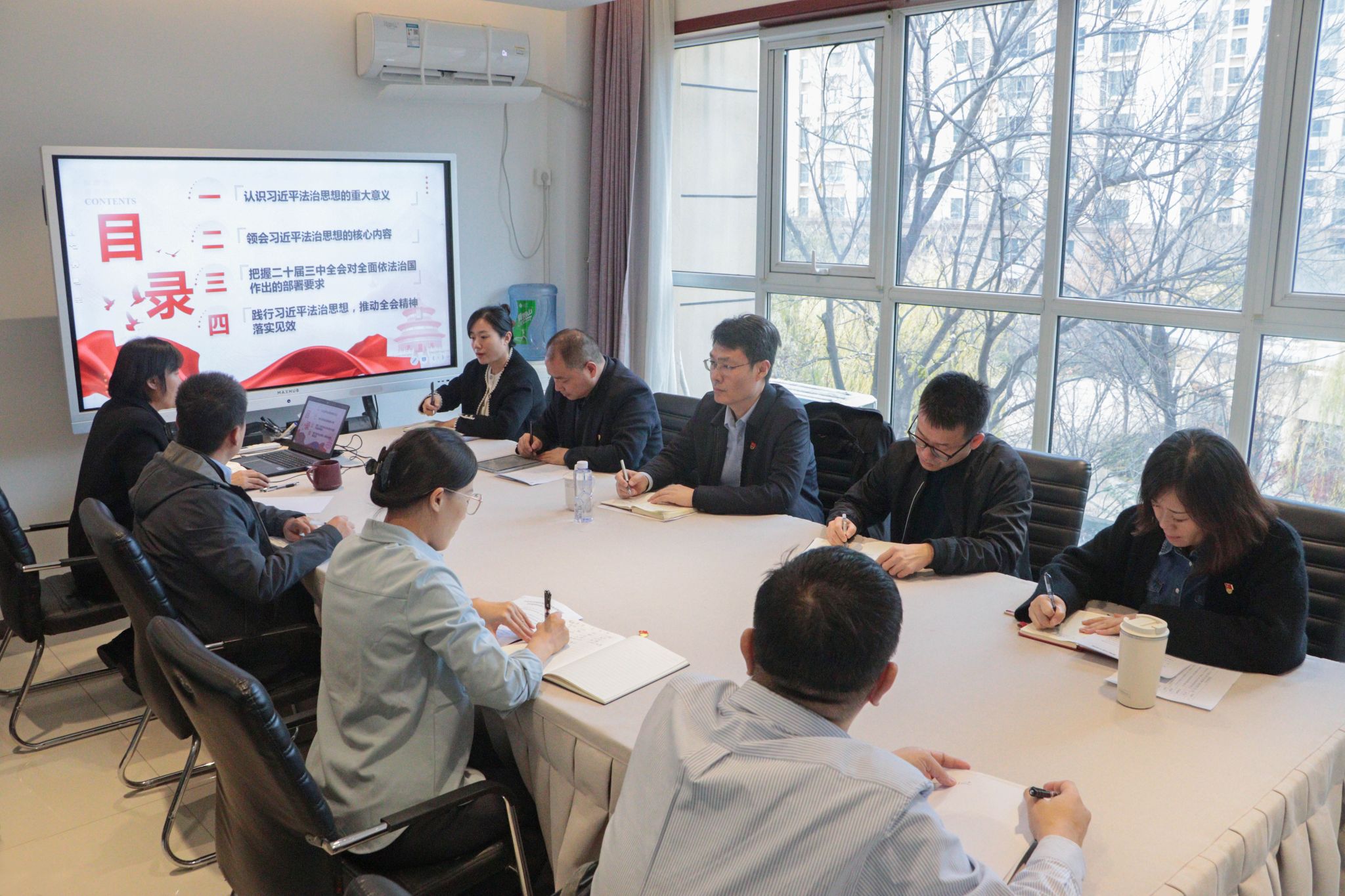 学院党委理论中心学习组学习会由学院党委书记赵新燕主持、领学,学院党委理论学习中心组成员、各支部书记、组织员、宣传员参加学习。