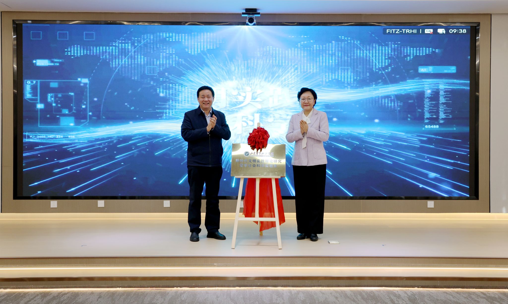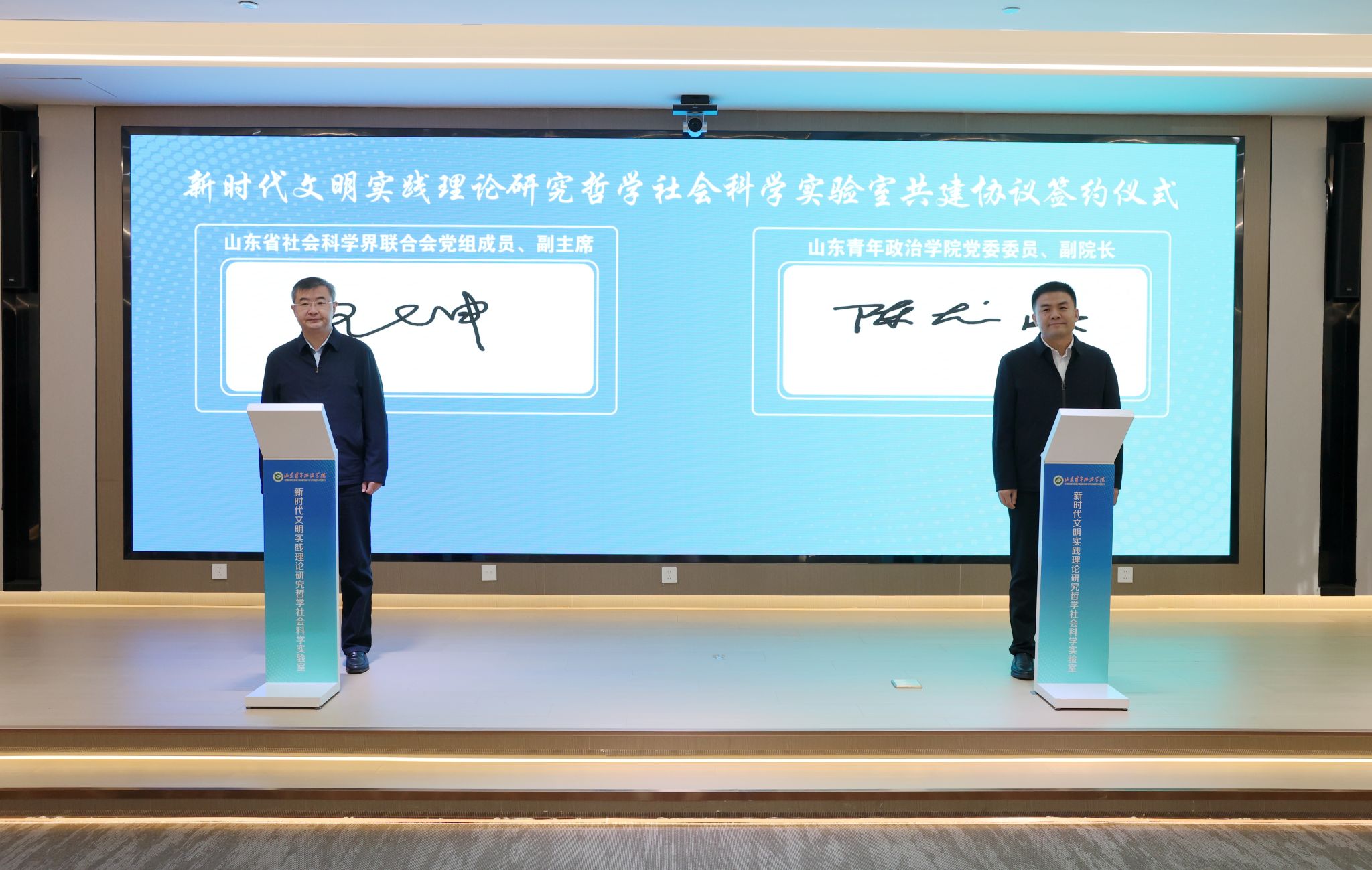 唐洲雁和魏艳菊共同为实验室揭牌,山东省社科界联合会与学校签署《实验室共建协议》。