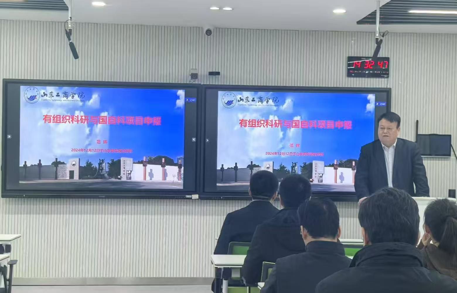 为提升教师国家自然科学基金项目申报书的撰写质量,强化有组织科研,学校于12月12日下午在知行楼514举办了第247期“学术前沿论坛”——有组织科研与国自科项目申报。本期论坛邀请山东工商学院二级教授、山东管理学院特聘教授范辉主讲,论坛由学校党委委员、副院长陈龙溪主持。