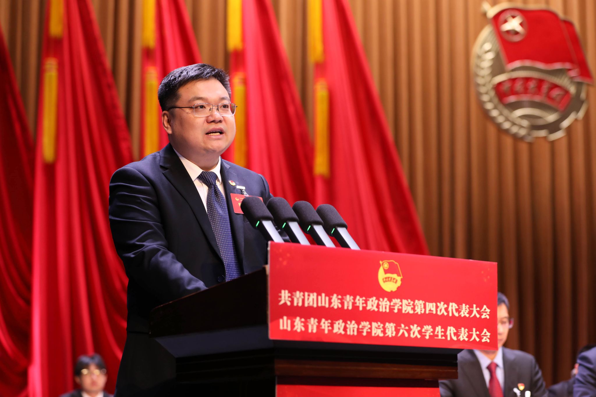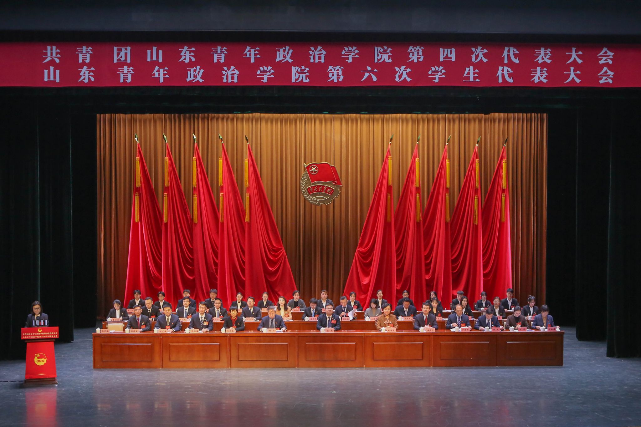 高举旗帜跟党走,团结奋进建新功。12月21日,在学校党委和共青团山东省委的正确领导和大力支持下,共青团山东青年政治学院第四次代表大会、山东青年政治学院第六次学生代表大会在山青剧院胜利召开。