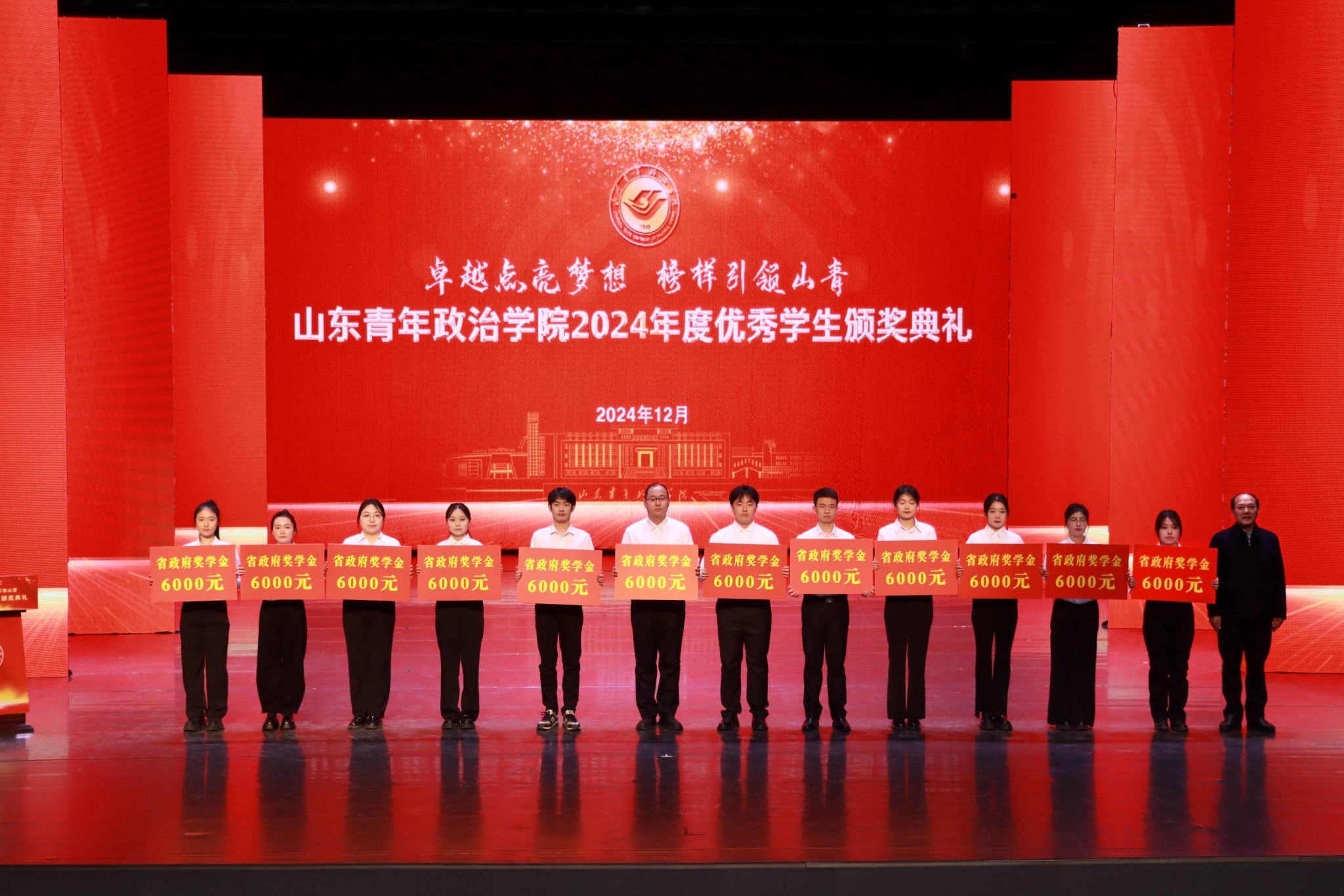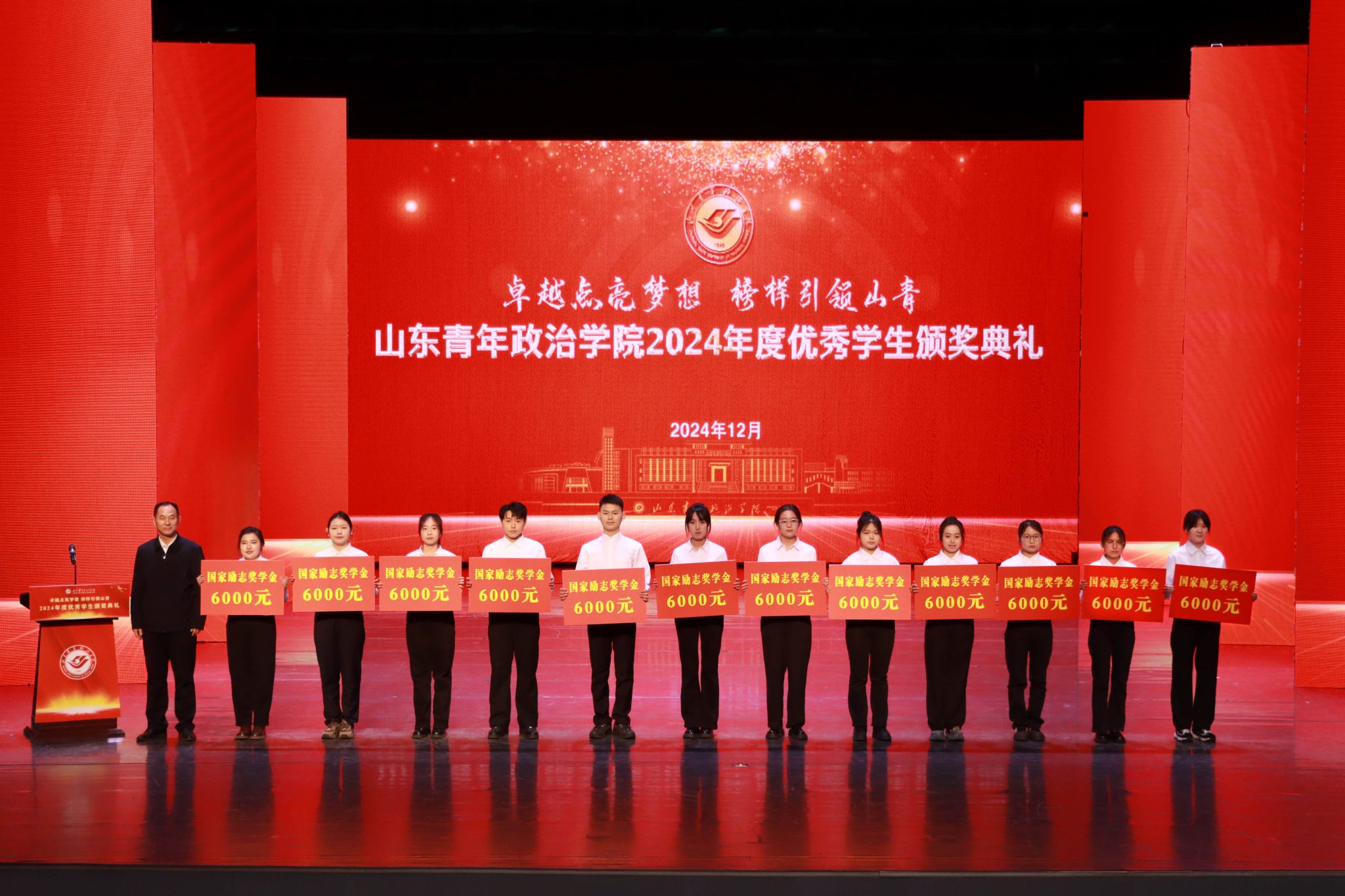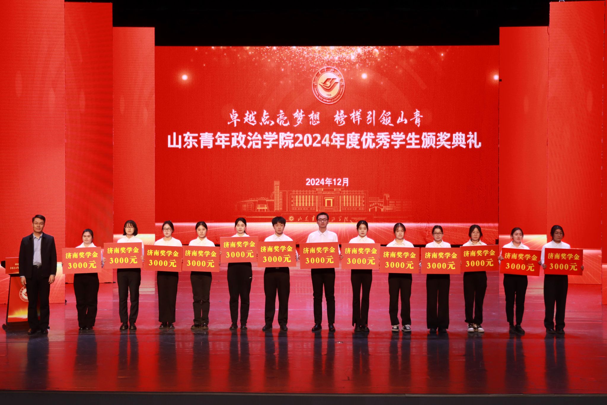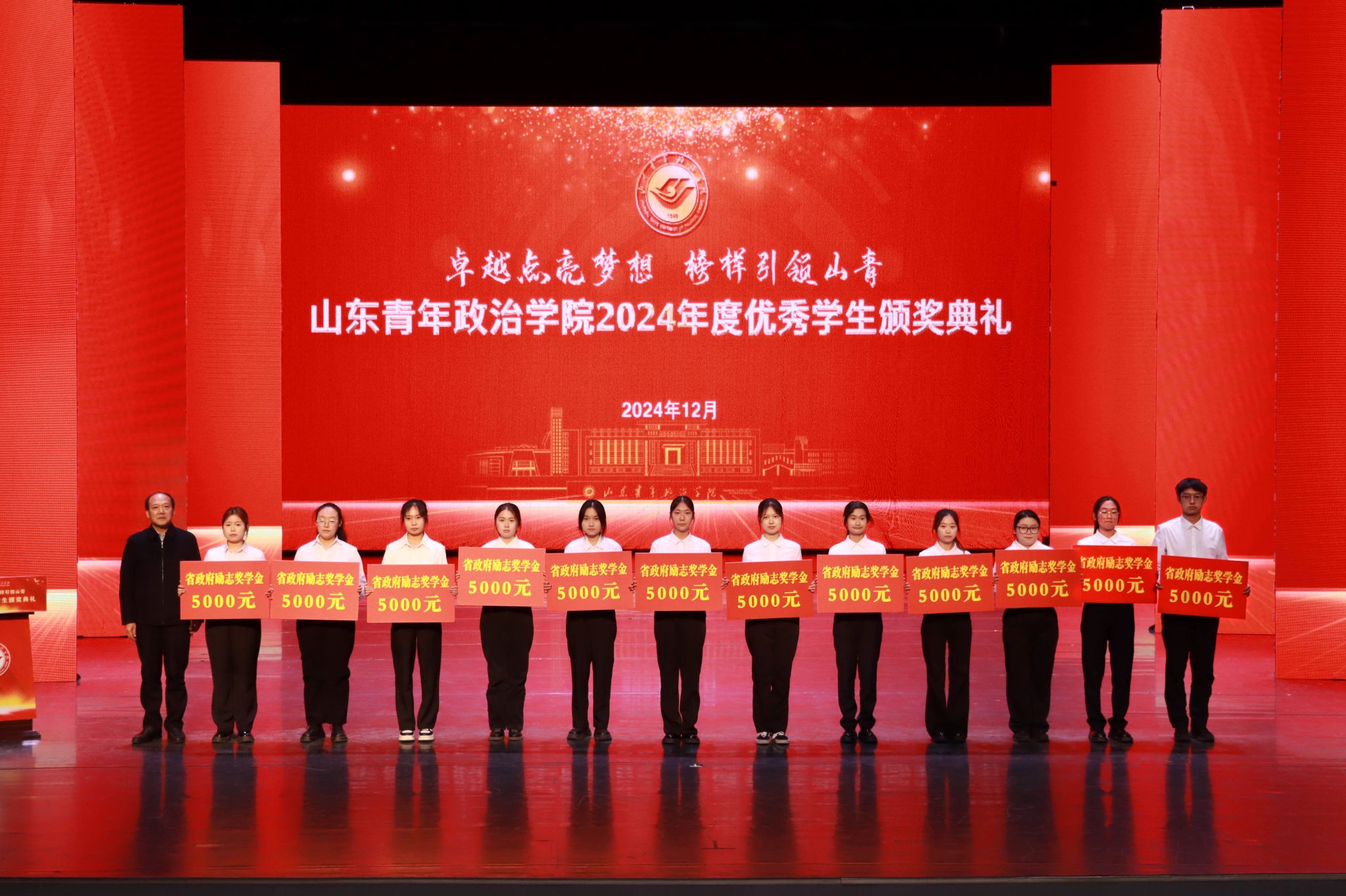 12月26日,学校2024年度优秀学生颁奖典礼在山青剧院成功举行。学校党委书记魏艳菊,党委副书记、院长辛杰,党委委员、副院长李玉英、于秀国,党委委员、纪委书记、监察专员高洪海,党委委员、副院长陈龙溪,党委委员、宣传部部长石瑞宝,党委委员、统战部部长、机关党委书记范红伟出席典礼。
