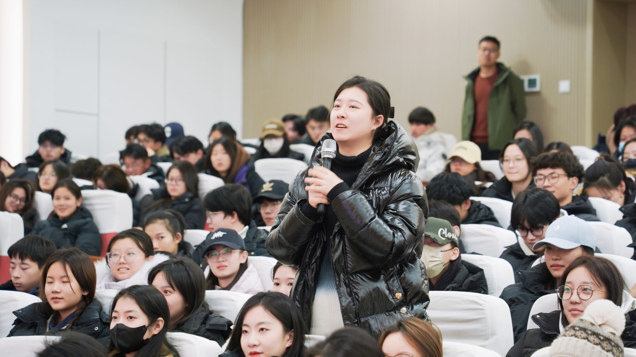 互动环节中,学生们积极提问,气氛热烈。对于如何在舞蹈创作中融合传统与现代元素,黄豆豆分享了他的独到见解。他认为传统是创作的根基,而现代元素则是飞翔的翅膀,只有在深入理解和尊重传统文化的基础上,才能巧妙融入现代审美和技术,创作出既有历史深度又具时代活力的作品。针对如何在舞蹈表演中更好地表达情感,黄豆豆指出,舞蹈不仅是身体的律动,更是心灵的抒发,他鼓励学生们在日常生活中多观察、多感受,将生活的真实体验融入舞蹈之中,让每一个动作都充满生命力和感染力。