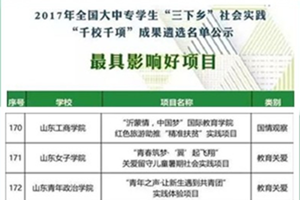 近日,由团中央学校部与人民网、中国青年报社联合开展的2017年全国大中专学生“三下乡”社会实践“千校千项”成果遴选宣传活动圆满结束,我校“青年之声·让新生遇到共青团”社会实践体验项目从全国2万余份申报项目中脱颖而出,荣获“最具影响好项目”。
