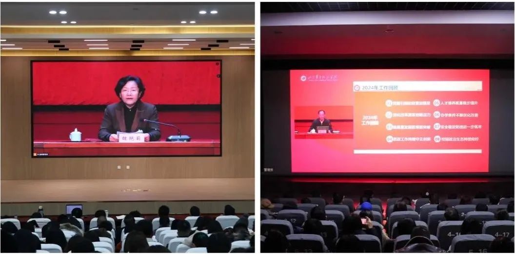 一年春作首,万事行为先。2月21日下午,学校召开2025年度工作会议。会议以习近平新时代中国特色社会主义思想为指导,深入贯彻党的二十届三中全会精神,全面落实全省抓改革创新促高质量发展大会部署要求,传达学习全省教育工作会议和全省高校党建工作会议精神,动员全校上下,深入推进“1158”发展战略,全面深化改革创新,不断开创学校事业高质量发展新局面。党委书记魏艳菊出席会议并讲话,党委副书记、院长辛杰作工作报告。会议由党委副书记刘涛主持。在家校领导出席会议。