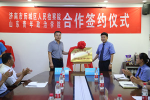 会上,高峰、曲士军代表双方签署合作协议书,并为“山东青年政治学院青少年违法犯罪研究基地”“山东青年政治学院社会实践基地揭牌”。