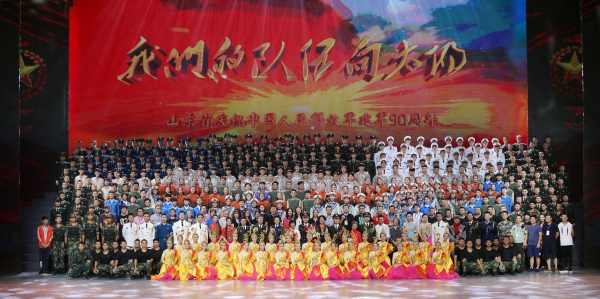 7月29日晚,由中共山东省委宣传部、北部战区陆军政治工作部、山东省文化厅、山东省新闻出版广电局、济南市主办,山东广播电视台承办的山东省纪念中国人民解放军建军90周年《我们的队伍向太阳》文艺演出在山东省会大剧院举行。省委书记刘家义,省委副书记、省长龚正,省政协主席刘伟,省委副书记、济南市委书记王文涛,济南军区善后办主任吉文明、政委高建国等领导与老战士、烈士家属、拥军模范、驻鲁部队官兵、社会各界群众代表等1200余人一起观看演出。我校纪委书记崔连富观看了晚会,舞蹈学院师生受邀参加了晚会演出。